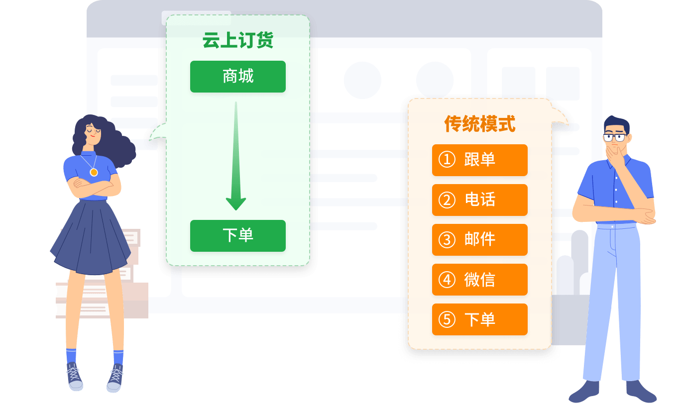 丢掉传统手写订货单,杜绝错单和漏单情况,系统精细化管理告别电话、微信、邮件等传统报单方式,客户自主选品下单付款,解放跟单员,每年节省一个跟单员,5000x12=6万元,一年至少可以省下6万元!