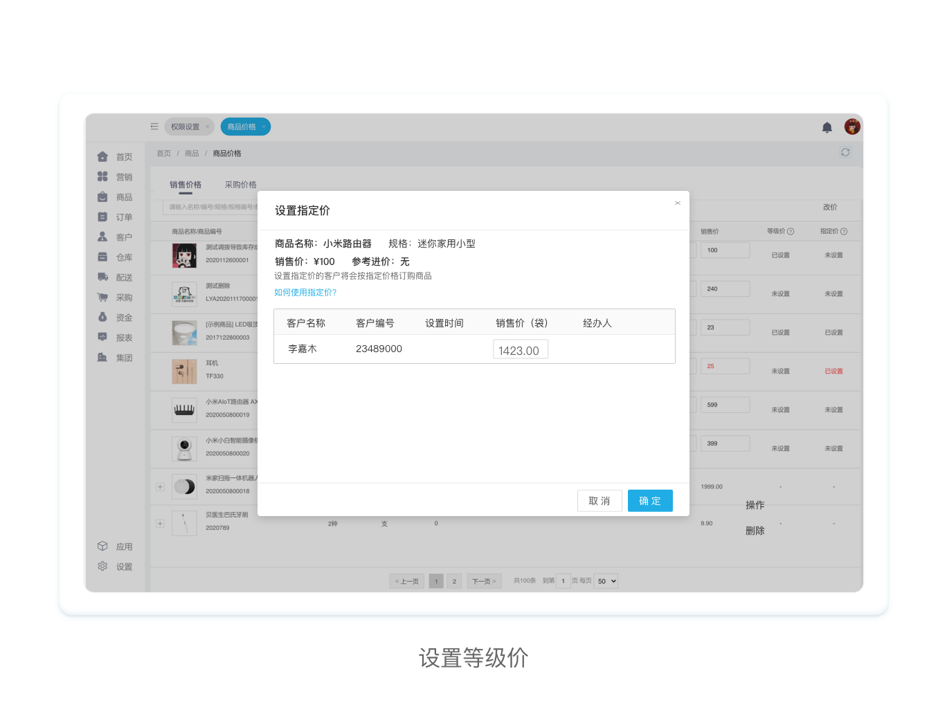 不同等级客户可以设置不同等级价,也可以单独为某个客户设置价格,做到一客一价,同种商品,不同规格价格也可不同。