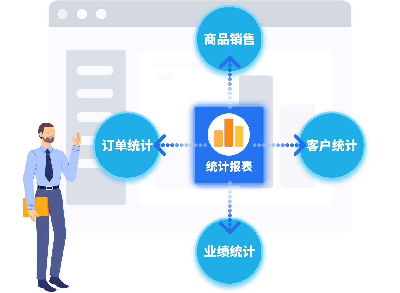 企业经营数据实时呈现,覆盖订单统计、商品销售、客户统计、业绩统计和销售毛利等统计,让企业做决策更科学理性,同时支持手机APP和PC电脑端查看。